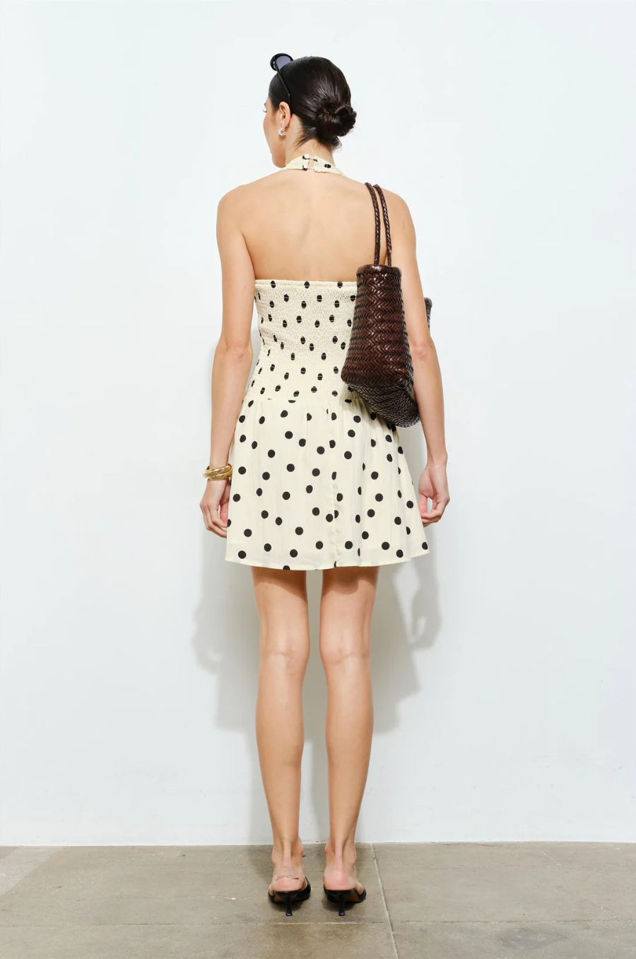 The Kiss & Tell Mini features a classic cream polka dot print with a flattering smocked bodice. Designed to hug your shape up top and flow into a breezy mini skirt, it’s the perfect mix of playful and chic for daytime plans or nights out.