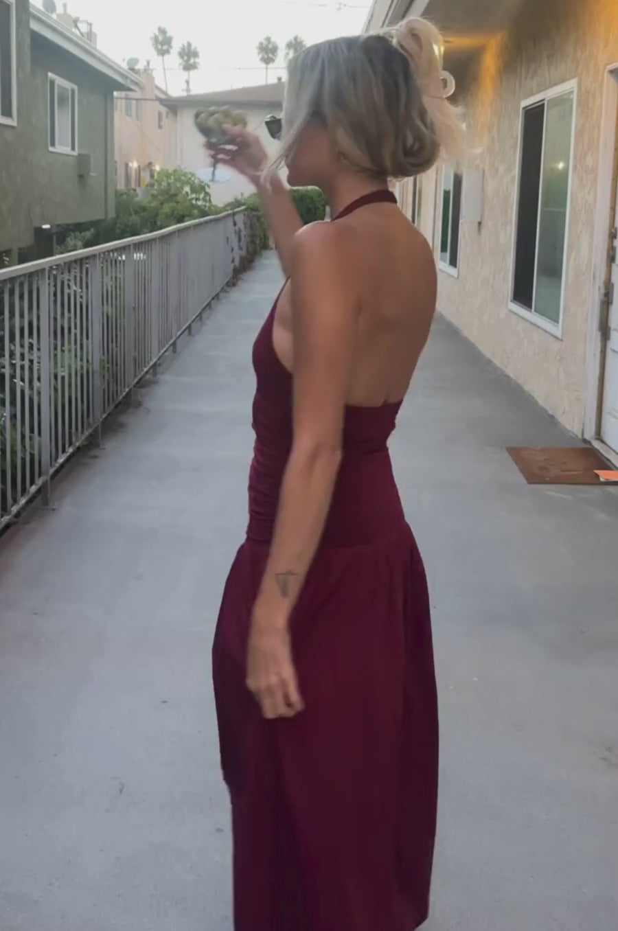 The Odessa Dress is all about soft drama. A ruched halter top and dropped waist add that effortlessly elongated feel, while the open back keeps things subtly romantic.